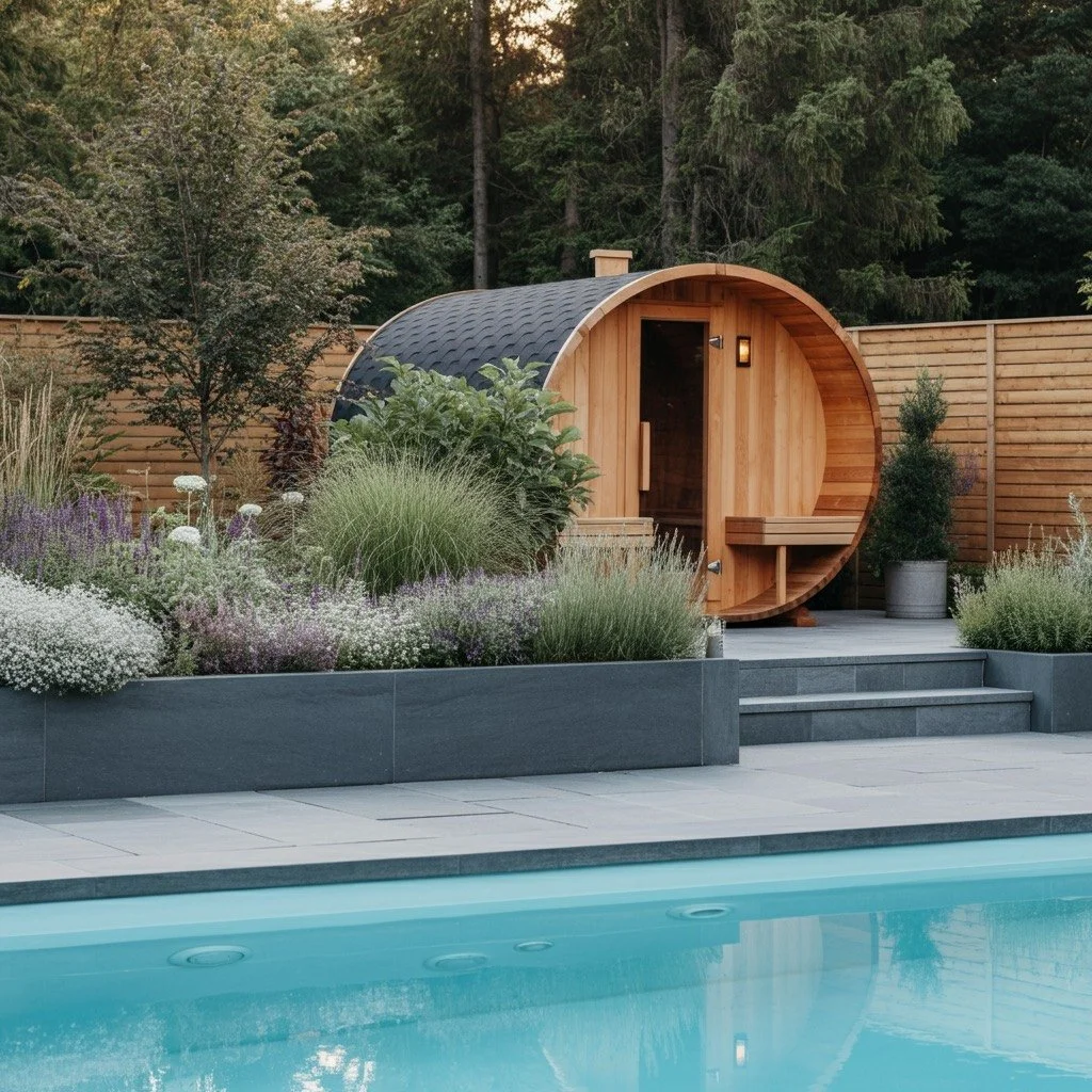 Outdoor saunas or showers that bring spa-like relief into everyday life